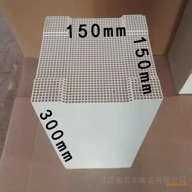 蓄热式高温空气燃烧方法(简称HTAC)是一项巨大节能和环保双重功效的新型燃烧技术,蜂窝陶瓷蓄热体是蓄热式燃烧器的关键部件,广泛用于钢铁,机械,建材,石化,有色金属冶炼等行业的各种加热炉,热风炉,热处理炉,裂解炉,烘烤器,溶化炉,均热炉,油气锅炉等炉窑中,该技术是通过换向装置使两个蓄热式交替吸热放热,大限制地回收烟气的热量,再把炉内的助燃空气和煤气加热到1000℃以上,即使低热值的劣质燃烧也能实现稳定着火和高效燃烧,可节省燃料达40-70℃。产量提高15℃以上,钢胚氧化损烧度下降40%以上,NO2排放小于100pm,排放烟气温度低于150℃,大大降低了地球大气的温室效应。如果全国大多数工业炉窑都采用HTAC技术,其经济效益和社会效益不可估量,将地缓解能源紧缺的状况,并改善人类的生存环境。我公司自主研发和生产的六角孔刚玉质,莫来石质和董青石质蜂窝陶瓷蓄热体,是在蓄热球和四角孔蜂窝陶瓷体的基础上,模仿生态蜜蜂窝的自然科学结构设计而成的,具有耐高温,抗腐蚀,热震稳定性好,强度高,蓄热热量大,热导性能好等显著优点,节能效果和使用寿命大大提高,自从投放市场以来,效果良好,深受钢铁冶炼行业的青睐。